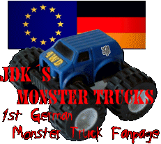 JDK´s BLITZ-NEWS: * Im Bereich Monster Trucks/ in Deutschland/ German Monster Trucks gibt´s per Link Bilder vom: "Chaos", "Street Devil", "bigking", "Predator", "CAR-KILLER", "Dirt Devil", "Just Destruction", "Monster Benz", "Champ Rocky", "KONG" und "Power Hulk". /// Im Bereich Monster Trucks/ in Deutschland/ externe Berichte gibt´s die "Traber Stuntshow 2007", die "Traber-Filmstunt-Show 2007", die "Tornado Stuntman-Show Monster Trucks 2007", die "Geschwister Korthoff Stuntshow 2005" sowie das "Lemoine Stuntteam 2007". /// Im Bereich Monster Trucks/ TV & Telespiele gibt´s Bilder und Link zum Online-Spiel "Shadow Factory". /// Im Bereich Monster Trucks/ Links gibt´s die australische Webseite "AMT-Aussie Monster Trucks" und die "Stuntracers Bilder Galerie". #